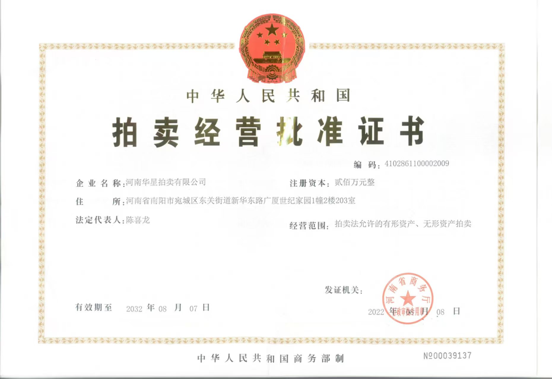 Copyright@2025-2026 河南華星拍賣(mài)有限公司 AllRights Reserved 版權(quán)所有. |